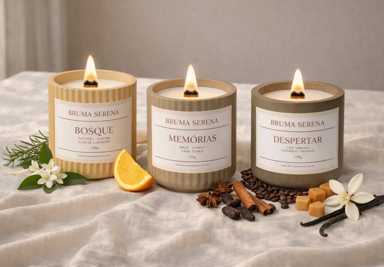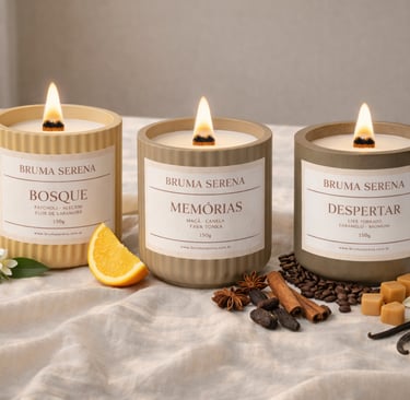 Velas artesanais criadas com matérias-primas naturais, fragrâncias premium, para transformar pequenos momentos em experiências sensoriais.