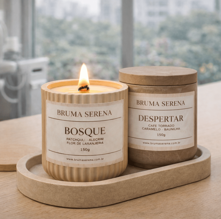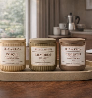 Velas artesanais e objetos sensoriais criados para transformar pequenos momentos em rituais de calma, presença e intenção.